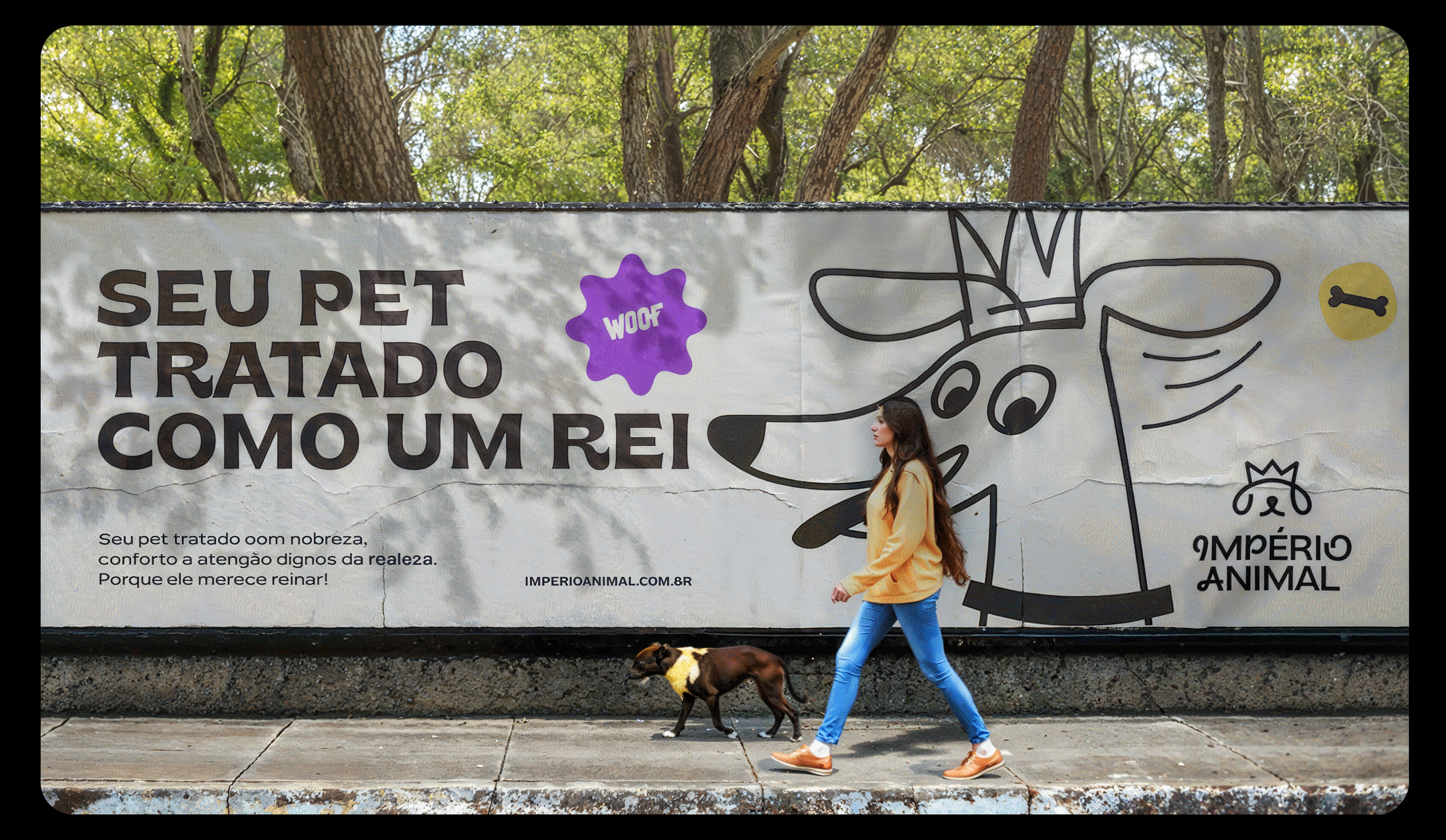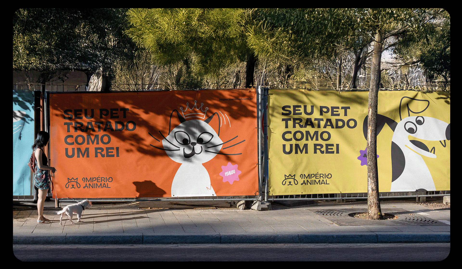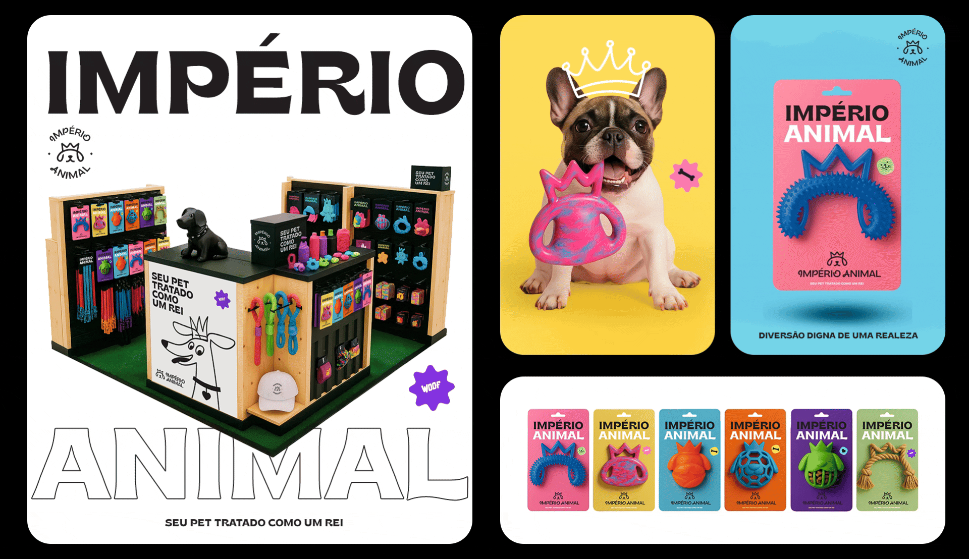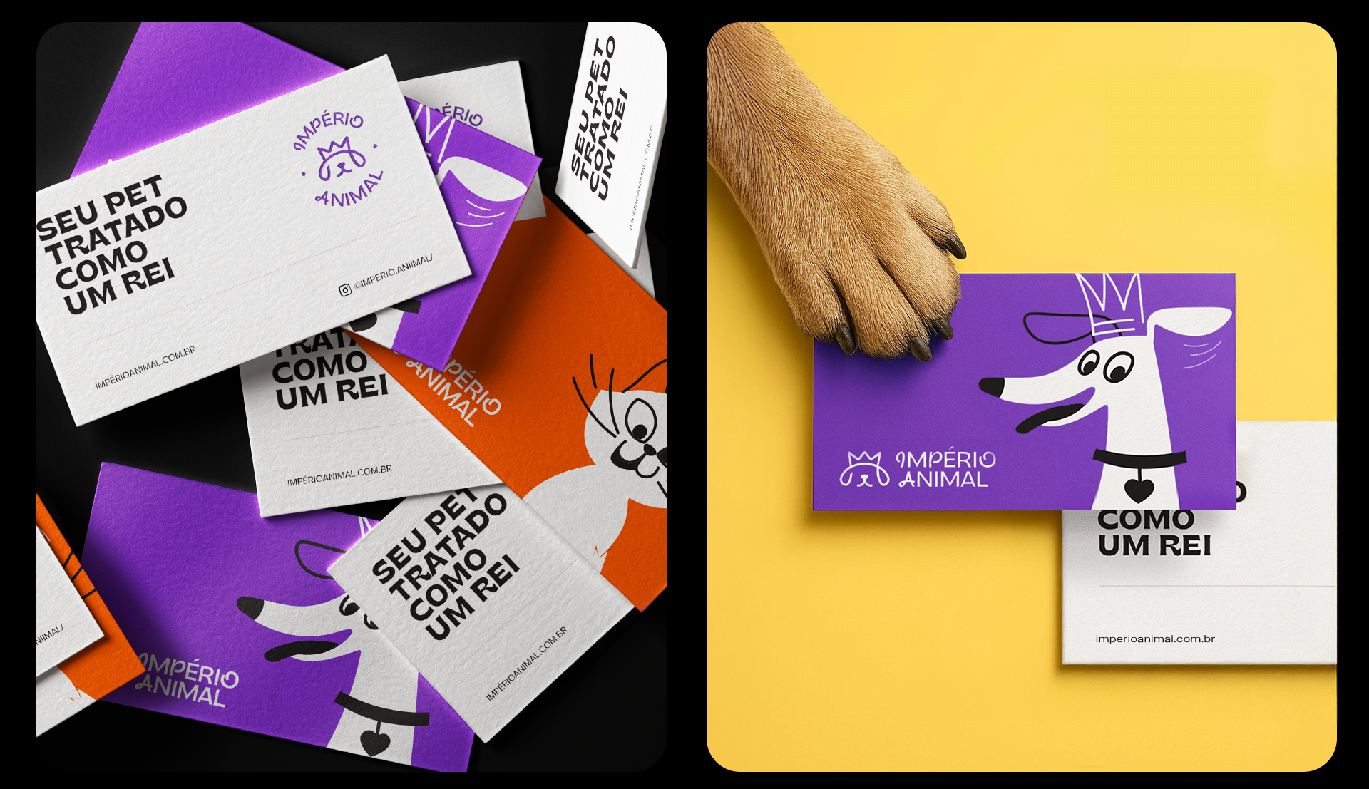 The identity was also designed to be highly adaptable. The brand works across different formats, including vertical and horizontal versions, stamps, and layouts with illustrations. Photos of pets with illustrated crowns on their heads help reinforce the brand’s positioning in a playful and emotional way. Illustrations of various breeds also emphasize diversity and help pet owners see their own animals reflected in the brand materials.