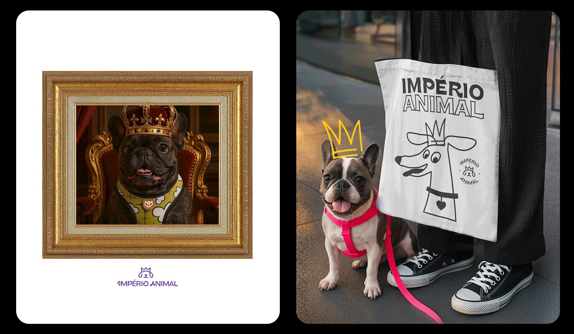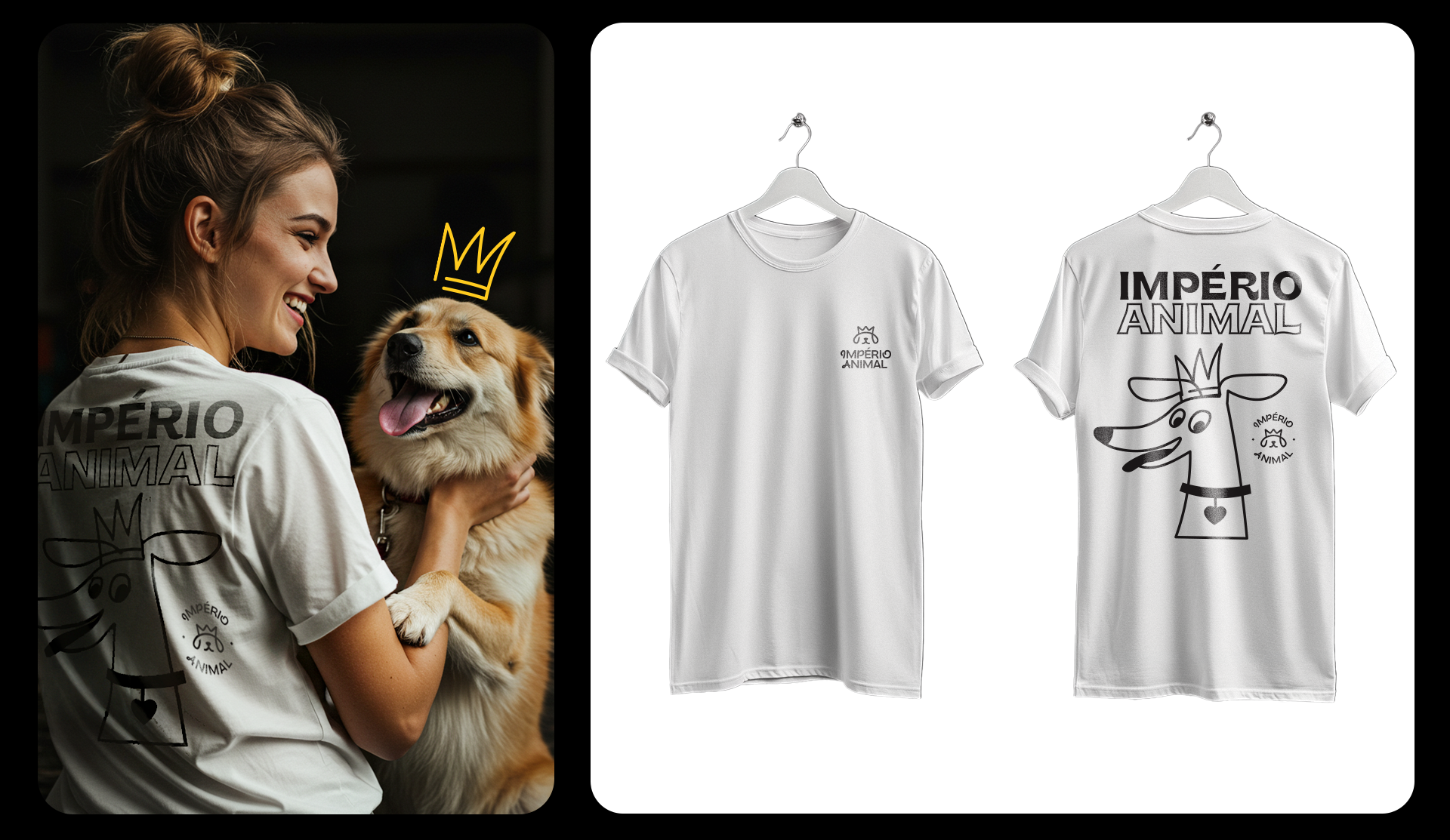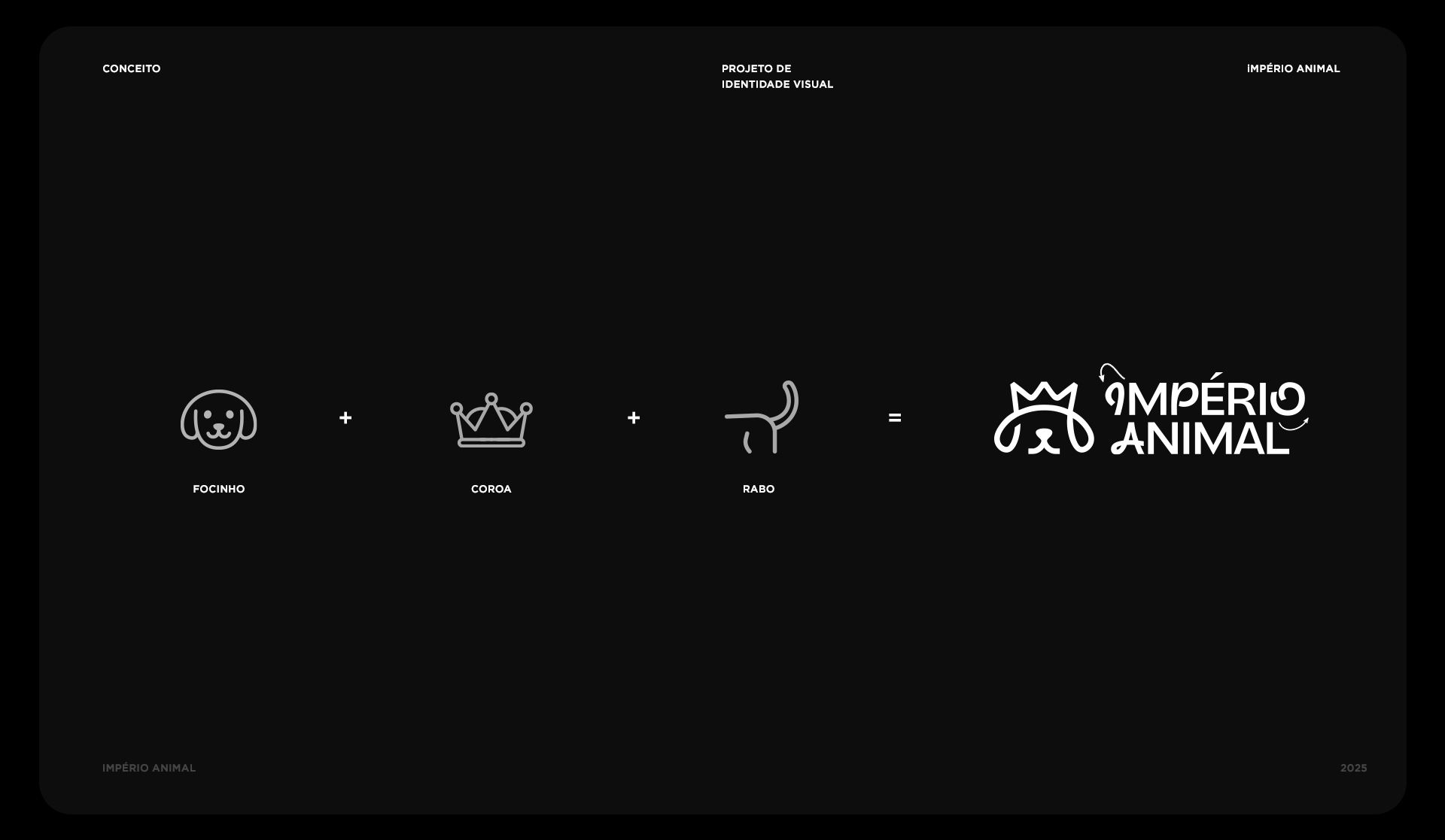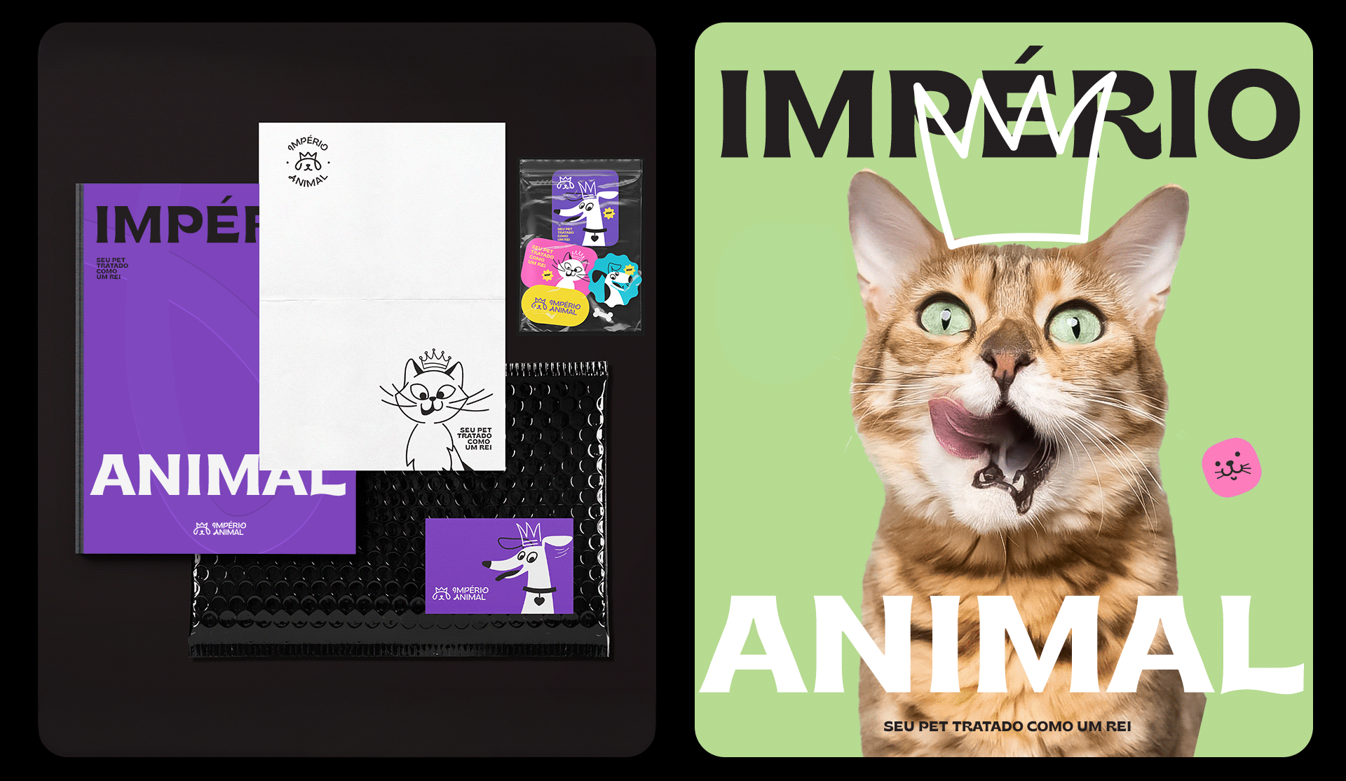 The visual identity was created with the idea of treating every pet like royalty. The brand symbol combines two key elements: a crown, representing nobility, care, and importance, and an animal’s snout, which brings a sense of empathy and affection. Together, they form a simple and memorable icon that clearly expresses the brand’s essence.